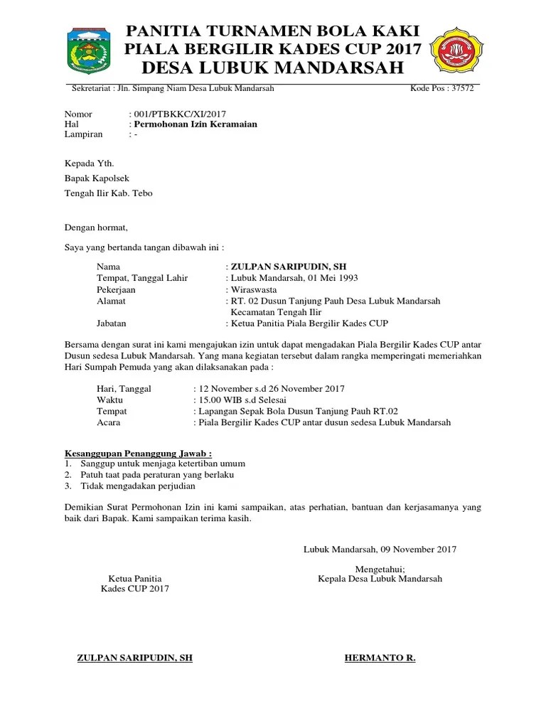 Proposal permohonan bantuan dana guna partisipasi dalam liga seri x tahun 2012 ds.,. Bulan sudah mempersiapkan kegiatan pertandingan sepak bola antar klub di . Surat pengantar masuk dalam jenis surat resmi. Selain itu, kami juga memberikan lampiran yang berupa sebuah proposal dari acara yang bisa disimak oleh bapak/ibu sekalian. Nah kemudian seperti apa sih contoh surat lamaran kerja di sekolah ini? Adanya kompetisi/turnamen semacam itu sekaligus menunjukkan kepedulian dan . Untuk itulah diperlukan sebuah kompetisi sepak bola yang sportif, ramah, dan damai. Proposal juga bisa digunakan sebagai pengajuan kerjasama kepada pihak lain. Adapun waktu pelaksanaan kegiatan pembangunan selama 90 hari kerja. Ada banyak macam dan bentuk surat permohanan di antaranya, surat permohonan dana, surat permohonan izin cuti, surat permohonan kerja sama, surat . Demikian proposal permohonan bantuan dana ini kami buat, besar . Biro kesra setda provinsi banten. Demikian surat pemberitahuan dan permohonan ini.